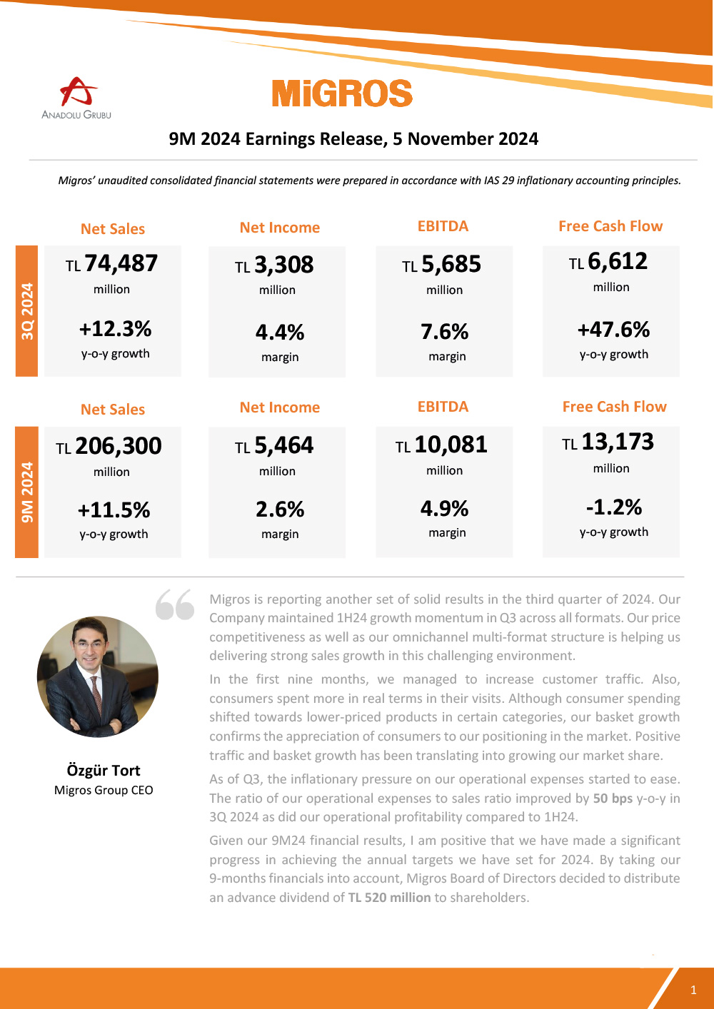 Migros 3Q 2024 Earnings Release