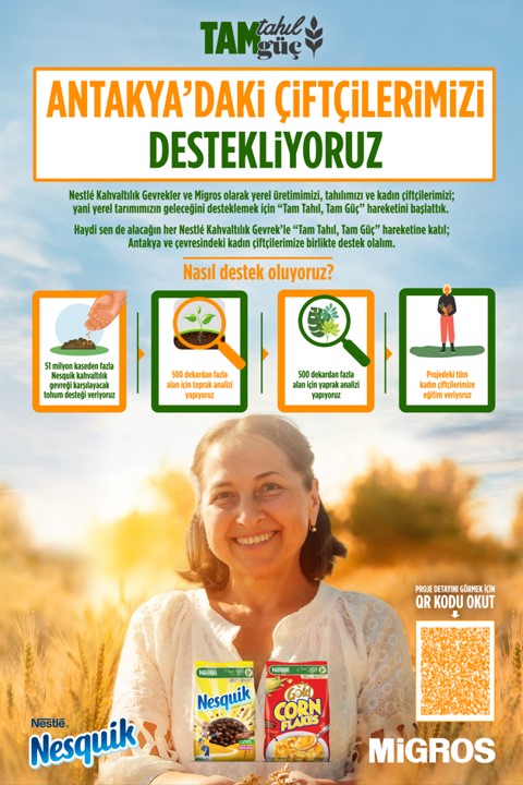 Nestlé ile Tam Tahıl Tam Güç Projesi: Nestlé Kahvaltılık Gevrekler iş birliğiyle hayata geçirilen "Tam Tahıl Tam Güç" projesi devam etmiştir. Antakya ve çevresindeki çiftçiler için 500 dekardan fazla arazide tohum desteği sağlanmış, tarım faaliyetlerinde verimlilik arttırılmaya çalışılmıştır. Proje kapsamında toprak ve yaprak analizleri yapılmış, çiftçilere özel eğitimler düzenlenmiştir. Kadın çiftçilere yönelik destek mekanizmaları da projeye dâhil edilerek yerel tarım ve kırsal kalkınma hedeflenmiştir.